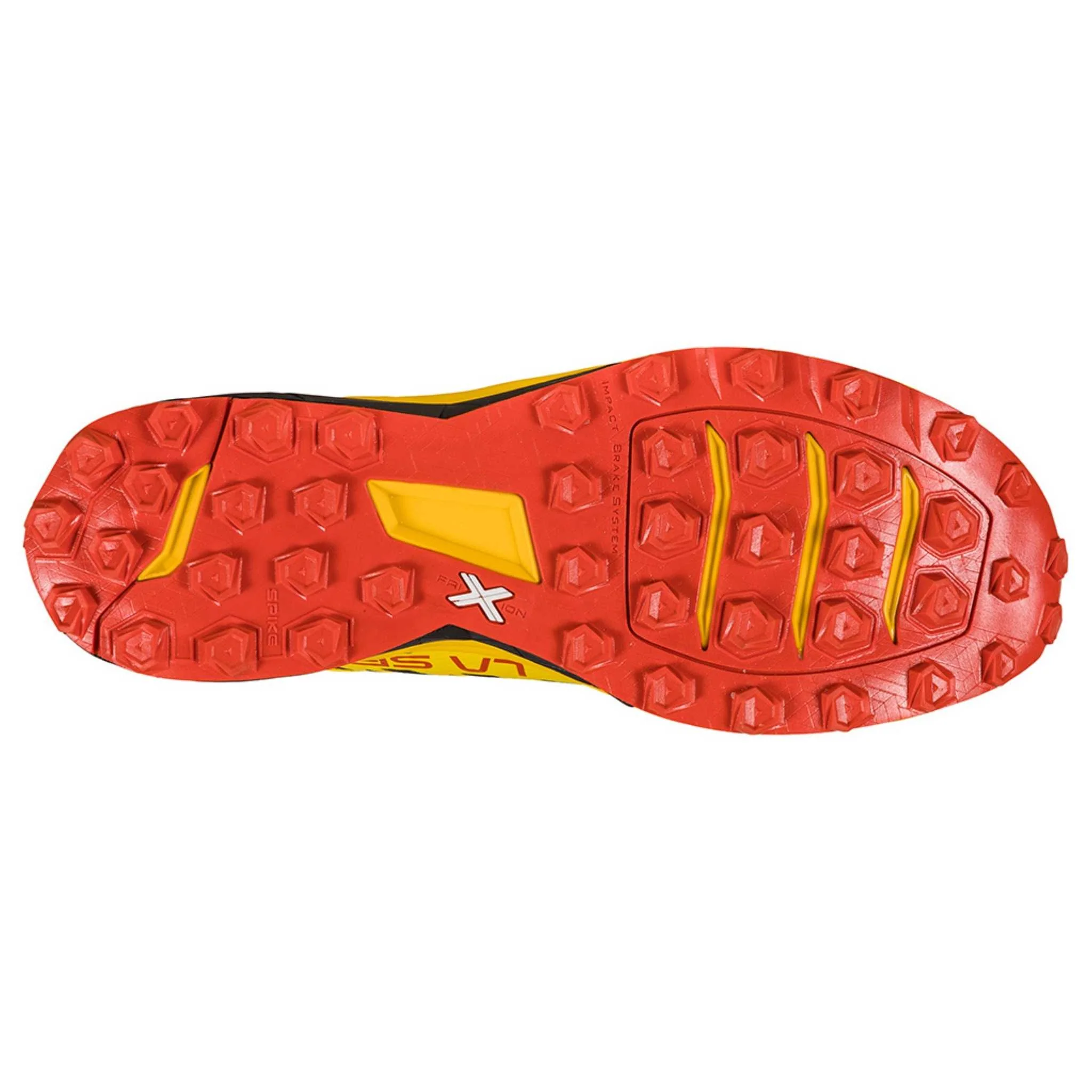 The sole/midsole package aims at providing the perfect balance between fluidity, stability, flexibility and traction thanks to the longitudinal cuts in the tread of the super grippy and extremely durable FriXion White compound with Impact Brake System lugs of different angle inclinations.Kaptiva: unleash your run