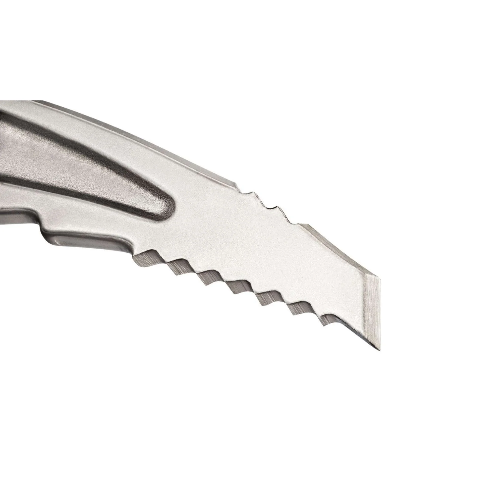 Teeth on upper part of pick strengthen the hold on the ice axe in piolet-rampe mode